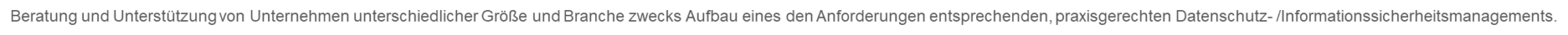 Beratung und Unterstützung von Unternehmen unterschiedlicher Größe und Branche zwecks Aufbau eines den Anforderungen entsprechenden, praxisgerechten Datenschutz-