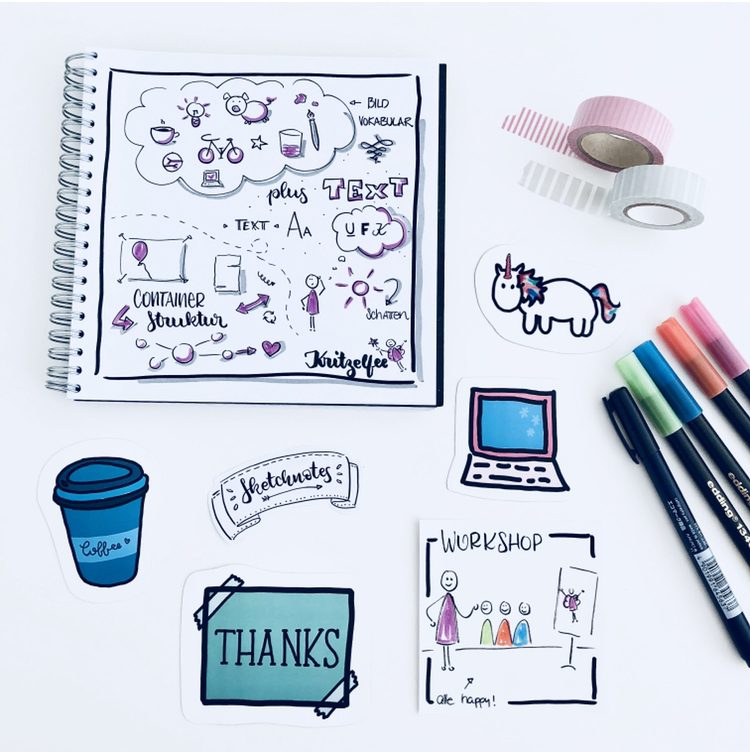 Abwechslungsreiche Einsatzmöglichkeiten im digitalen Bereich, animierten Kritzelfilmen und Erklärvideos, sowie Illustrationen und Graphic Recording runden ihr Angebot ab. Auf Sie zugeschnittene kreative Workshops für Ihre Kunden oder Mitarbeiter lassen ihr Kritzelherz leuchten!